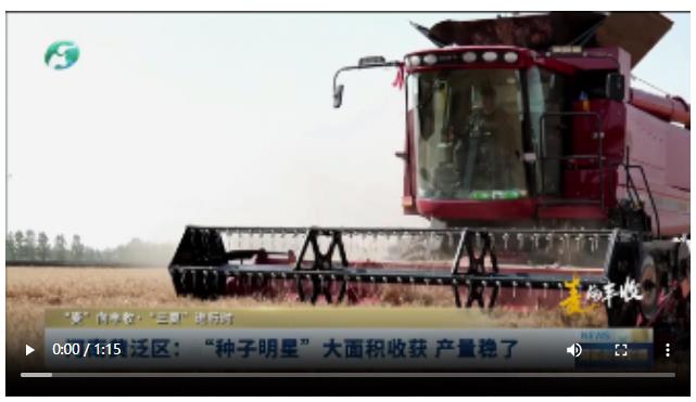 河南廣電大象新聞記者 常運中:觀眾朋友,這裏是黃泛區農場二分場的優質專用小麥生產基地。當地正在組織大型收割設備搶收,確保小麥顆粒歸倉。