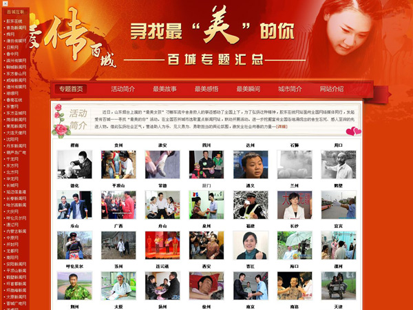 12月1日,為了弘揚山東煙台“最美女孩”刁娜舍身救人的精神,由百家城市網站參與的“愛傳百城——尋找最美的你”活動在煙台廣播電視大廈啟動。中國網盟各成員單位在網站首頁同步推出來自全國各地不同行業、不同階層的“最美”人物,一個個愛心故事迅速在互聯網上傳播。