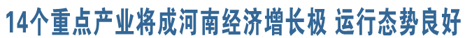 【裝備製造產業】培育20個特色產業集聚區,今年和明年洛陽動力穀、中原電氣穀分別建成千億元產業集群;建設軌道交通裝備製造基地和鄭州、新鄉、南陽、安陽、焦作、開封、濟源裝備產業集群。