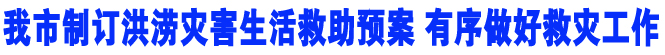 為進一步提高我市汛期防洪的應急反應和緊急救助能力,有序做好救災工作,最大限度地減輕因災造成的損失,切實保障受災群眾的生命安全和基本生活,市民政局專門成立洪澇災害生活救助指揮部,負責災區群眾生活安置及救助工作,下設查災報災組、物資保障及調配組、轉移安置組、生活安置組、信息報道組。一旦遭遇險情,各級各部門要迅速啟動預案,做好洪澇災民生活安置工作。